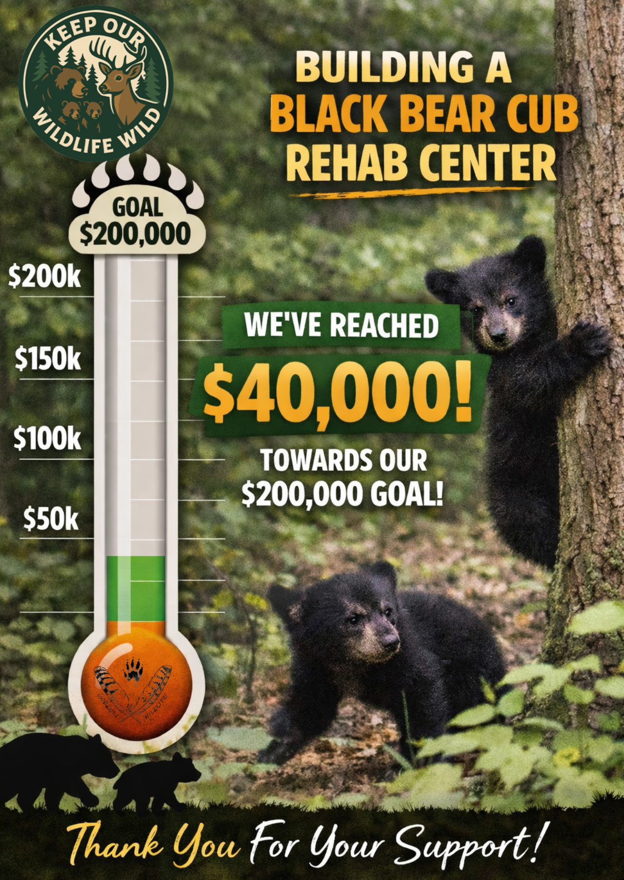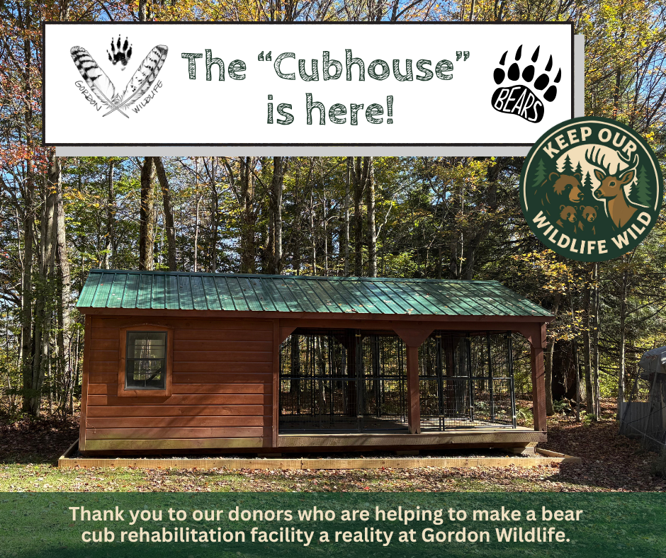Gordon Wildlife has been approved by the Department of Environmental Conservation to build a state-of-the-art black bear cub rehabilitation facility on our campus where rescued cubs can grow strong and wild enough to be safely returned to the Adirondack wilderness.